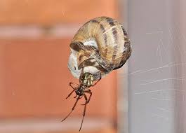 Μια μικρή αράχνη σηκώνει ένα μεγάλο σαλιγκάρι.(Video)