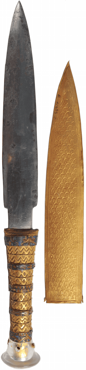 Το 1925, ο αρχαιολόγος Χάουαρντ Κάρτερ ανακάλυψε δύο εγχειρίδια, το ένα σιδερένιο και το άλλο με χρυσή λεπίδα, μέσα στην ταινία του σαβάνου του νεαρού βασιλέα, η σορός του οποίου «μουμιοποιήθηκε» πριν από 3.300 χρόνια.